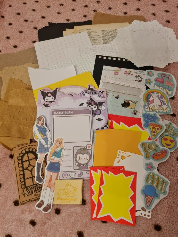 Este set incluye mas de 50 papeles y stickers (en la segunda foto se ve mas la variedad de papeles que vienen)